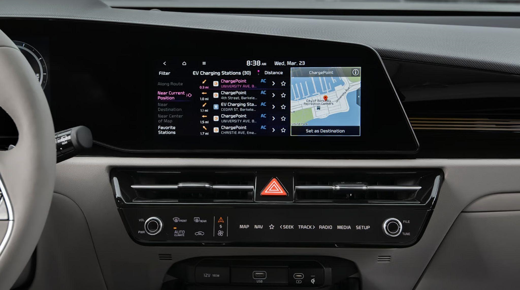 Inside the Kia Niro EV, drivers are treated to an upscale and technologically advanced cabin that prioritizes connectivity and convenience. A 10.25-inch touchscreen display is standard and includes factory navigation, along with support for Android Auto and Apple CarPlay for seamless smartphone integration. The standard Dual Zone Automatic Climate Control ensures the driver and passenger can maintain personalized comfort levels. For those warm Mission Viejo days, the Wave trim offers ventilated front seats in addition to the standard heated front seats, providing comfort in all seasons.